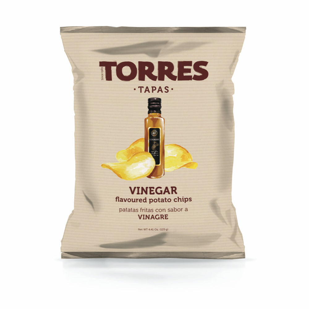 Torres chips are made with premium potatoes grown by local farmers on the Iberian Peninsula in Spain. Every step of the process—from cutting to drying to frying—is done the old-fashioned way by hand to ensure premium quality. Light, crispy and truly addictive, they're a shop and neighbourhood favorite. Superior quality and excellent flavour in a light, crispy chip with a balanced vinegar flavour that's somehow both subtle and punchy.