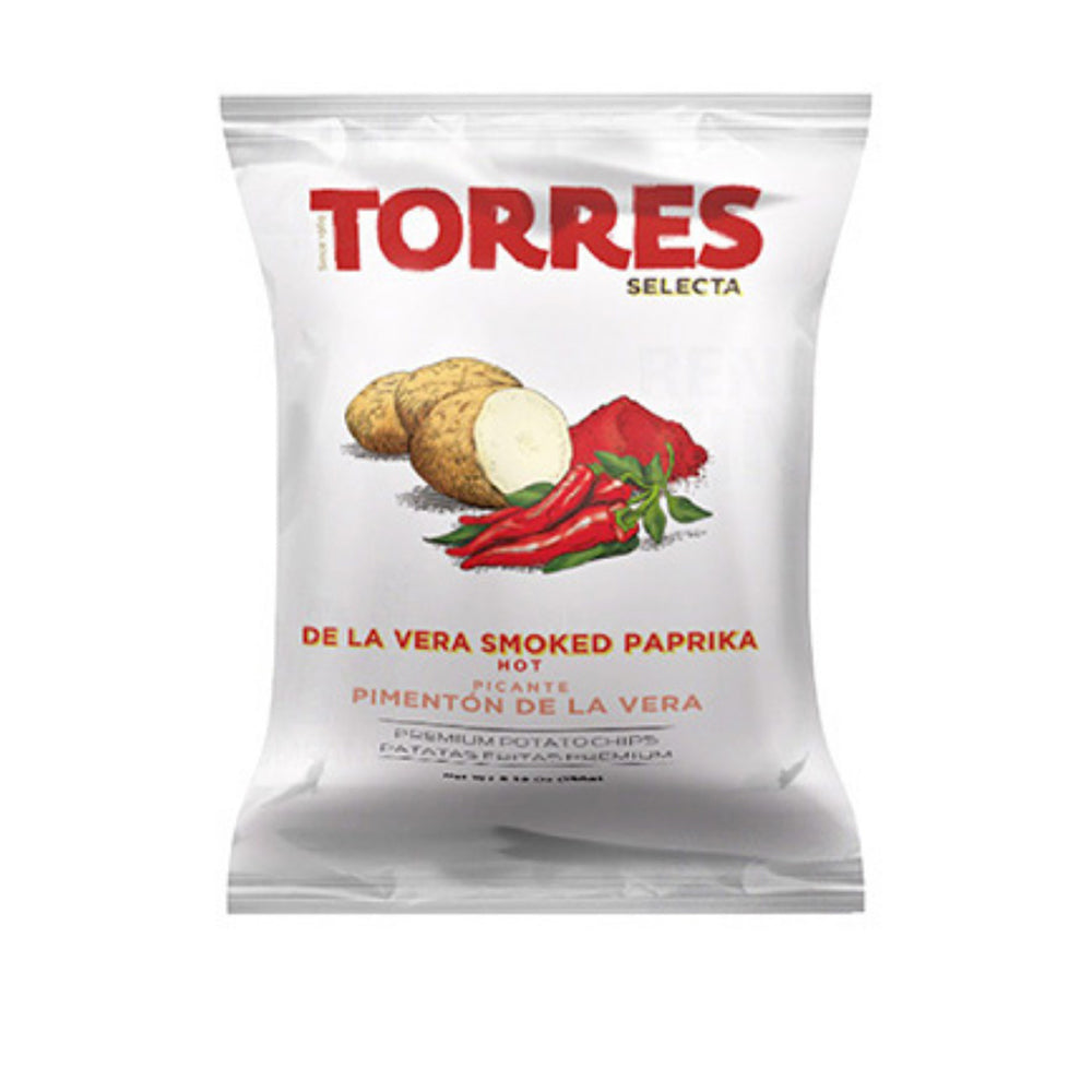 Torres smoked paprika crisps are just what you want with a cool glass of beer or lemonade. The crisps are dusted with hot, oak-smoked De la Vera DOP paprika, which has a spicy, smoky kick.